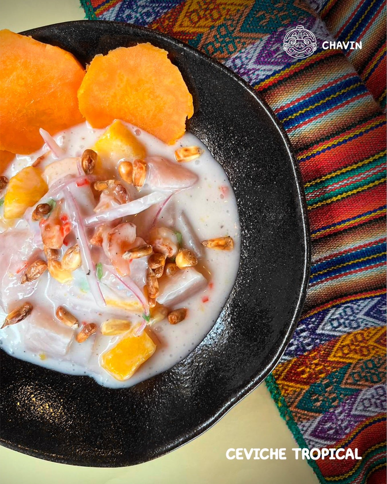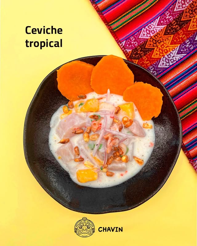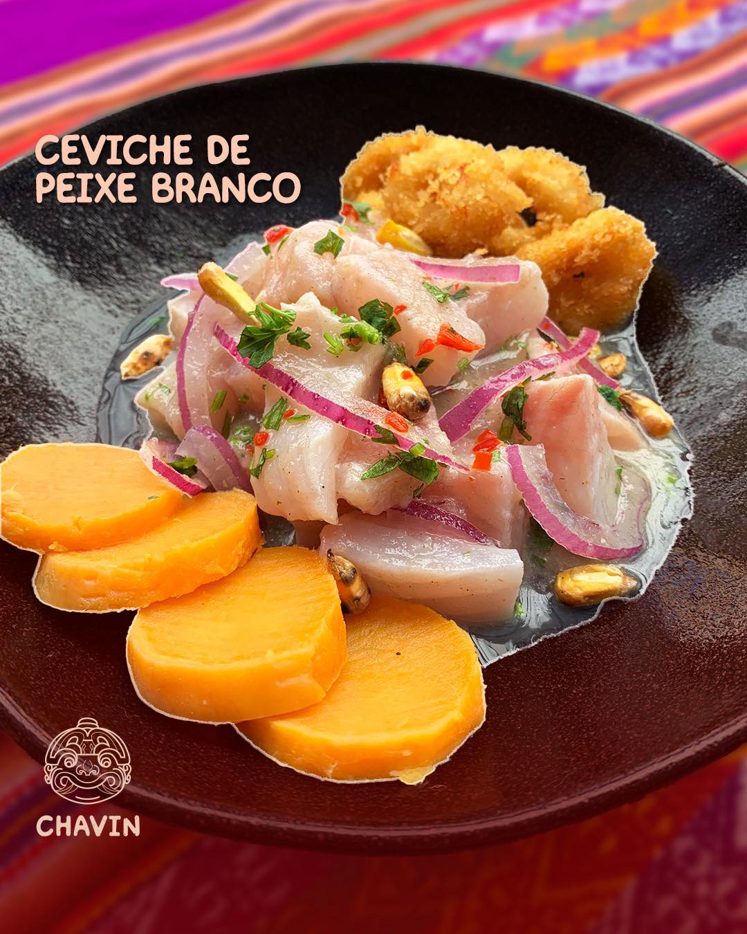 Ceviche de peixe branco + File Chavin + Torta de 3 leches Comece sua jornada com o refrescante Ceviche de Peixe Branco, preparado com peixe fresco marinado no ponto certo, acompanhado de cebola roxa e milho, uma explosão de frescor e sabor.